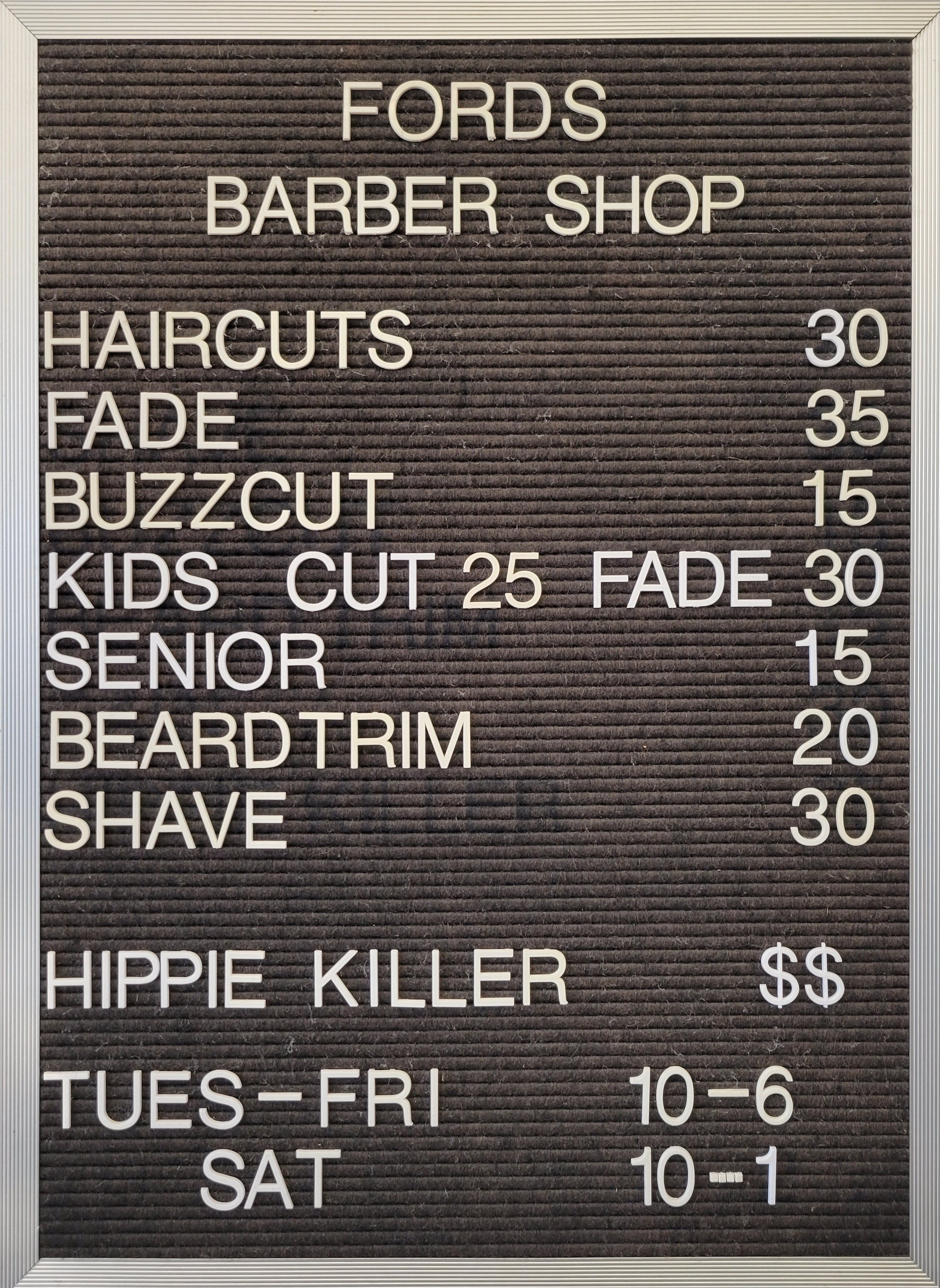 Located in Tulsa's Ranch Acres Shopping Center. In a town full of tradition you will find Ford's . We take pride in giving every customer who sits in the chair the best possible experience we can provide. We accomplish this by taking pride in the trade of Barbering with a thorough consultation and attention to detail. We have 3 barbers, each unique to the experience and have their own style without forgetting the ways of classic barbering. Come have a spirited conversation or a cold drink while you wait. You never know who you will find in Ford's, from the local celebrity or movie star to a U.S. Senator, or even published authors. They all stop in from time to time and you should too. Ford’s is a traditional Walk-In Shop, so come by and grab a seat.